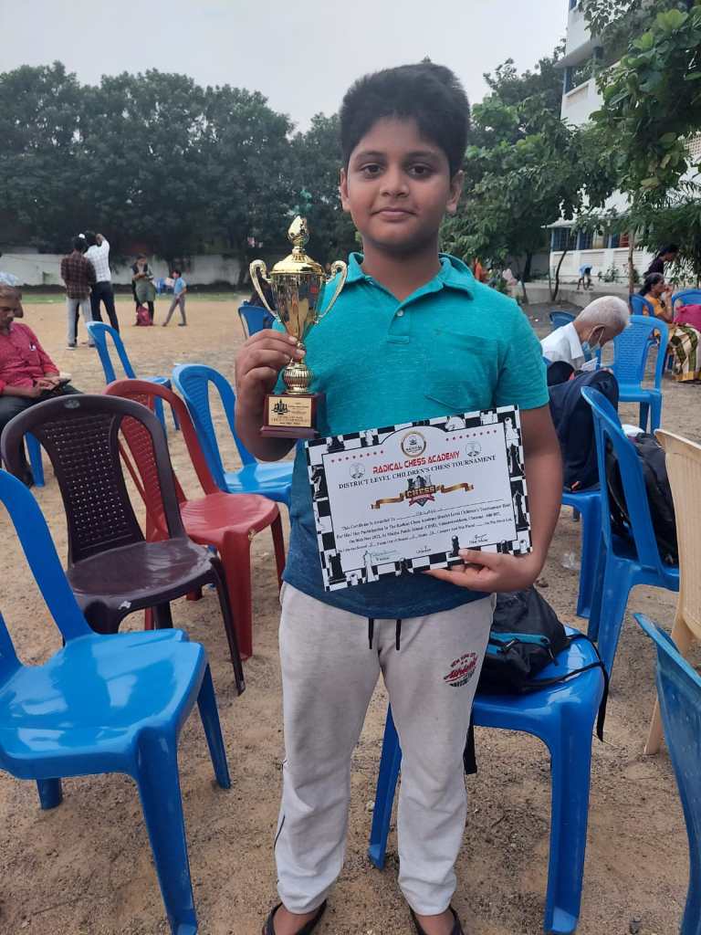 On November 6, 2022, our Kailash took part in a chess tournament hosted by Radical Chess Academy in Valasaravakkam. He finished fifth with 5 points out of a possible 6.