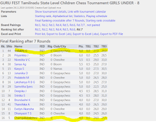 Pooja scored 5 points out of 6 and was placed 3rd in U-10 Girls