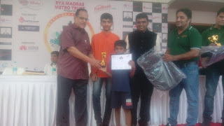 Kandan scored 6.5 points out of 8 and won the Ist Prize and Title in U-10 Category.